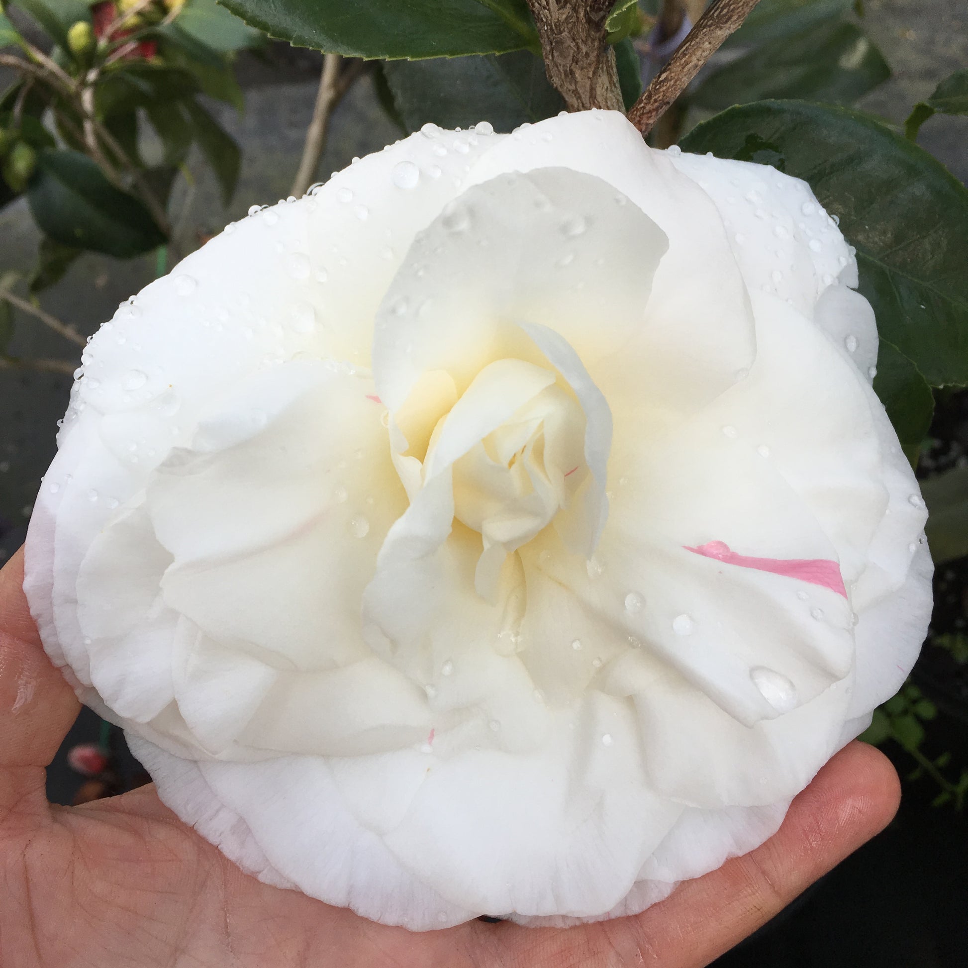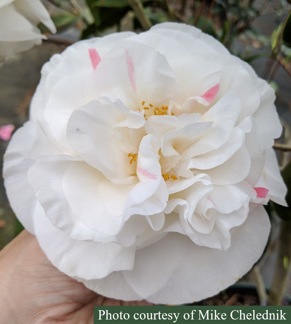 Policy effective April 1, 2022: No refunds will be processed for variegated Camellias on account for solid blooms. We try our best to select plants that have visible variegated blooms, but due to the genetics of the plant, the variegated blooms cannot be guaranteed. By adding this plant to your cart, you accept the no refund policy.