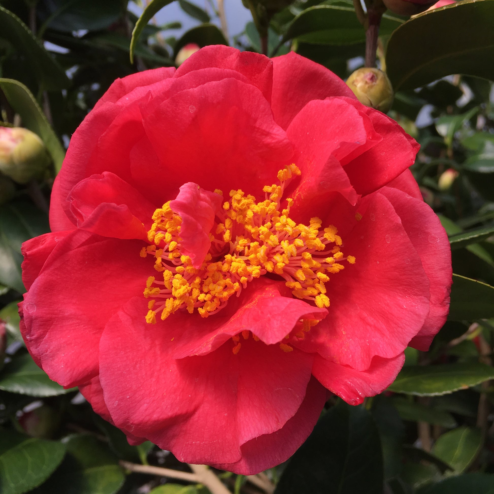 This medium red peony form boasts both bud hardiness and a heavy bud set, as well as broad leaves. An incredible garden display every year! A Camellia Forest Introduction.