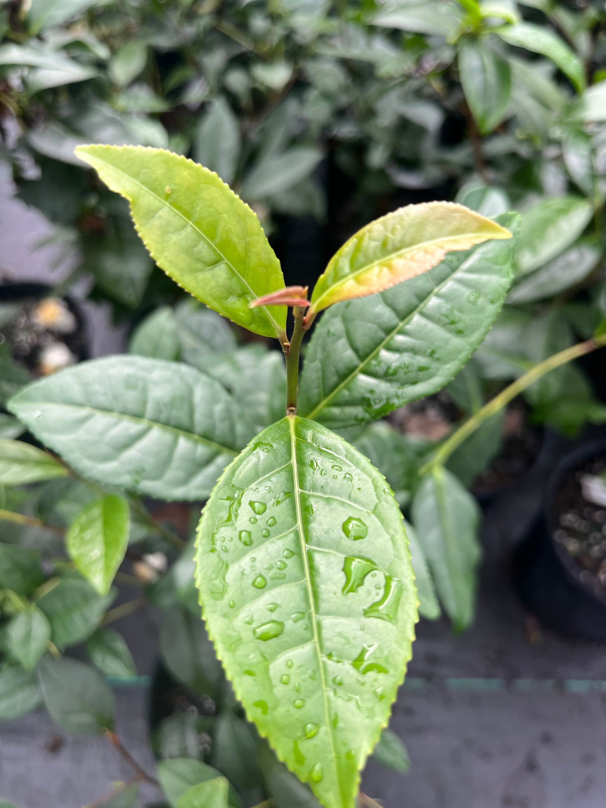 These are seedlings grown from Indian seed. We expect these to have larger leaves but will probably be less cold hardy than Camellia sinensis var sinensis. We will only know more about these seedlings from an Indian provenance as they grow and develop.