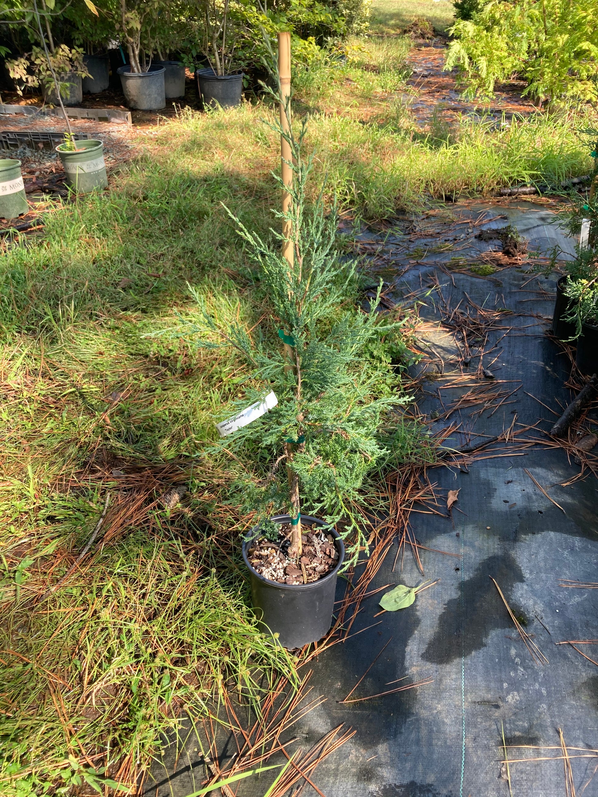 'Taylor' is an upright columnar form of the Eastern red cedar, which is native to eastern parts of North America. It prefers moist soils but is highly drought resistant. This cultivar was reportedly found as a chance seedling in Taylor, Nebraska, hence the name. Eastern red cedars have male and female plants and 'Taylor' is thought to be a male. Expect it to reach 20 feet high and 3 to 4 feet wide in 10 years. [20'T x 3-4'W in 10 years. Zones 4-9].