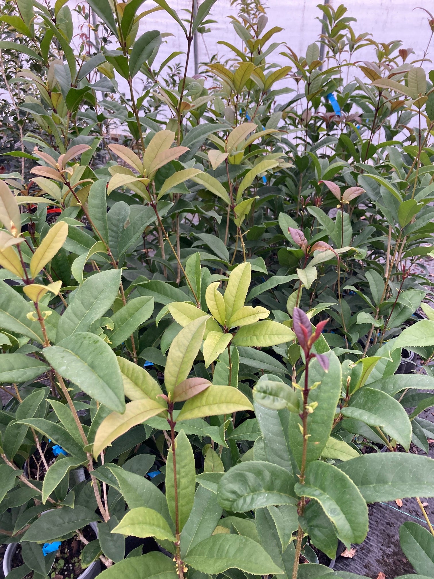 Deep burgundy new growth adorns this small Orange Tea Olive, which repeatedly blooms throughout fall and winter. Plant in full sun for the strongest flower color. A vigorously growing cultivar that can become leggy in full shade.